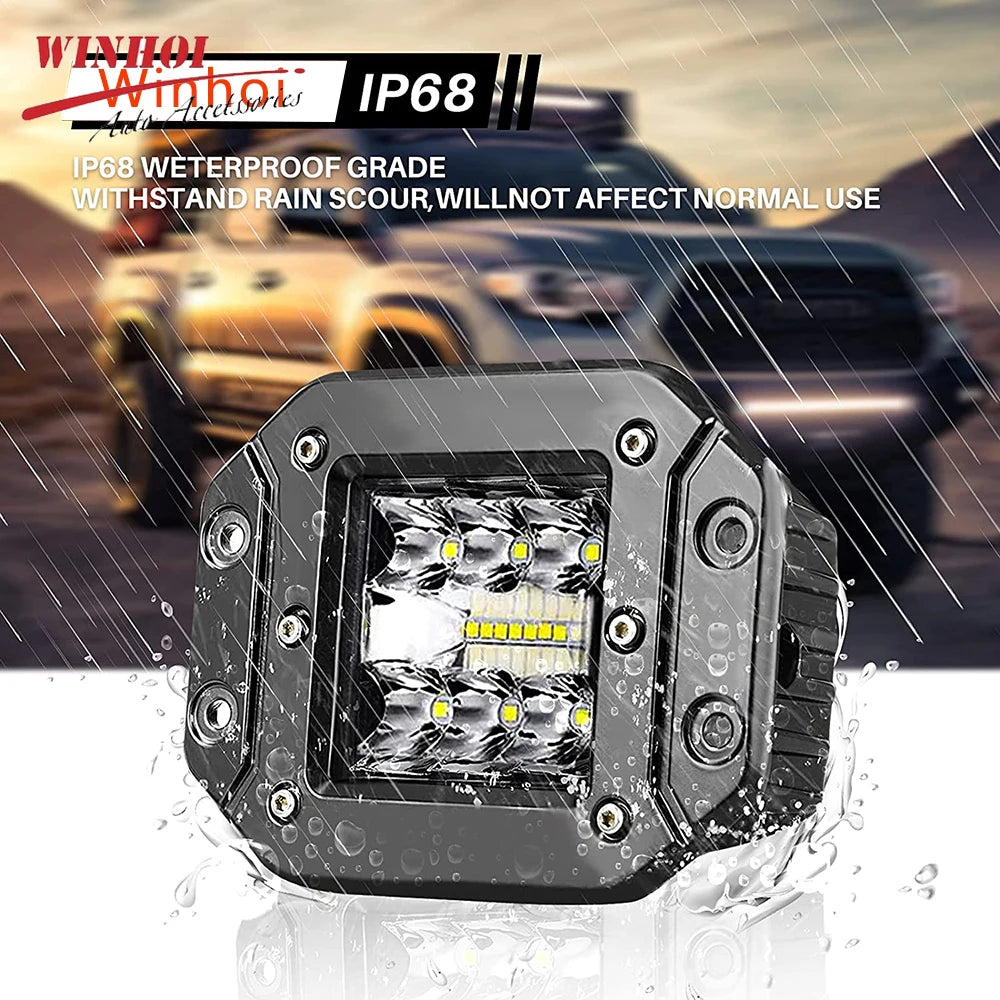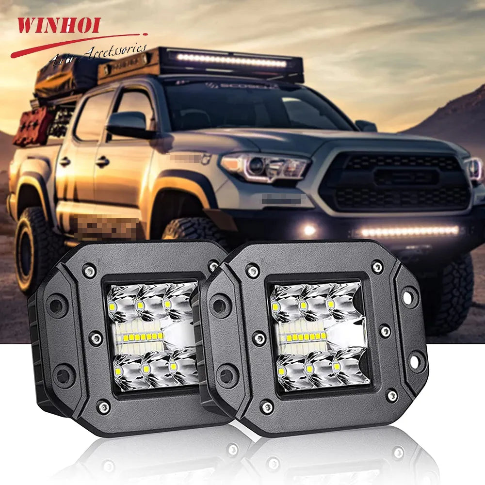 2pc 48W 5 Inch Flush Mount Work Light Led Spot Flood Light Bar Aluminum Bright Beam Fog Lamp for Jeep 4x4 Off Road Truck Trailer
